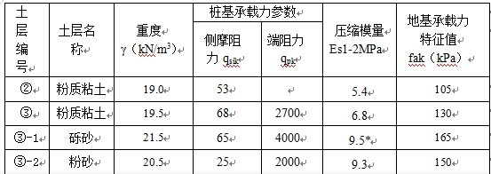 根据地质报告,各层主要岩土参数如下: