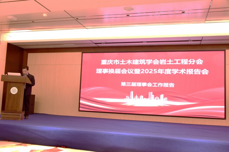 会议伊始,重庆市土木建筑学会岩土工程分会(以下简称“分会”)第三届理事会会长丁选明向全体与会代表作了工作报告。报告全面、系统地回顾了过去几年分会所开展的各项工作与取得的突出成绩,尤其在推动学术交流、促进行业技术创新、服务地方重大工程建设等方面展现了分会的积极作为与重要影响力。